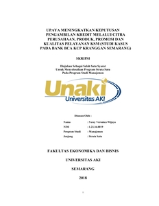 Wijaya, Yessy Veronica (2018) UPAYA MENINGKATKAN KEPUTUSAN PENGAMBILAN KREDIT MELALUI CITRA PERUSAHAAN, PRODUK, PROMOSI DAN KUALITAS PELAYANAN KSM (STUDI KASUS PADA BANK BCA KCP KRANGGAN SEMARANG). S1 thesis, Universitas Aki.