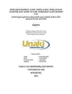 Karolina, Kezia (2022) PENGARUH KOMITE AUDIT, OPINI AUDIT, PERGANTIAN AUDITOR, DAN AUDIT TENURE TERHADAP AUDIT REPORT LAG (Studi Empiris pada Perusahaan LQ45 yang Terdaftar di Bursa Efek Indonesia Periode 2016-2020). S1 thesis, Universitas Aki.