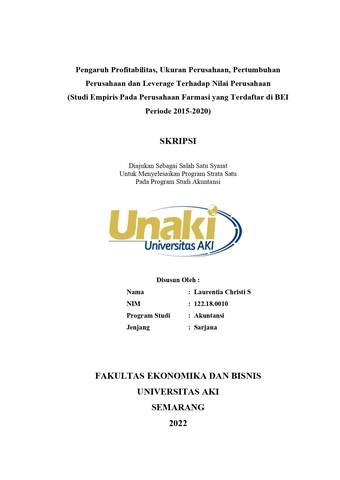 Shelomita, Laurentia Christi (2022) Pengaruh Profitabilitas, Ukuran Perusahaan, Pertumbuhan Perusahaan dan Leverage Terhadap Nilai Perusahaan (Studi Empiris Pada Perusahaan Farmasi yang Terdaftar di BEI Periode 2015-2020). S1 thesis, Universitas Aki.