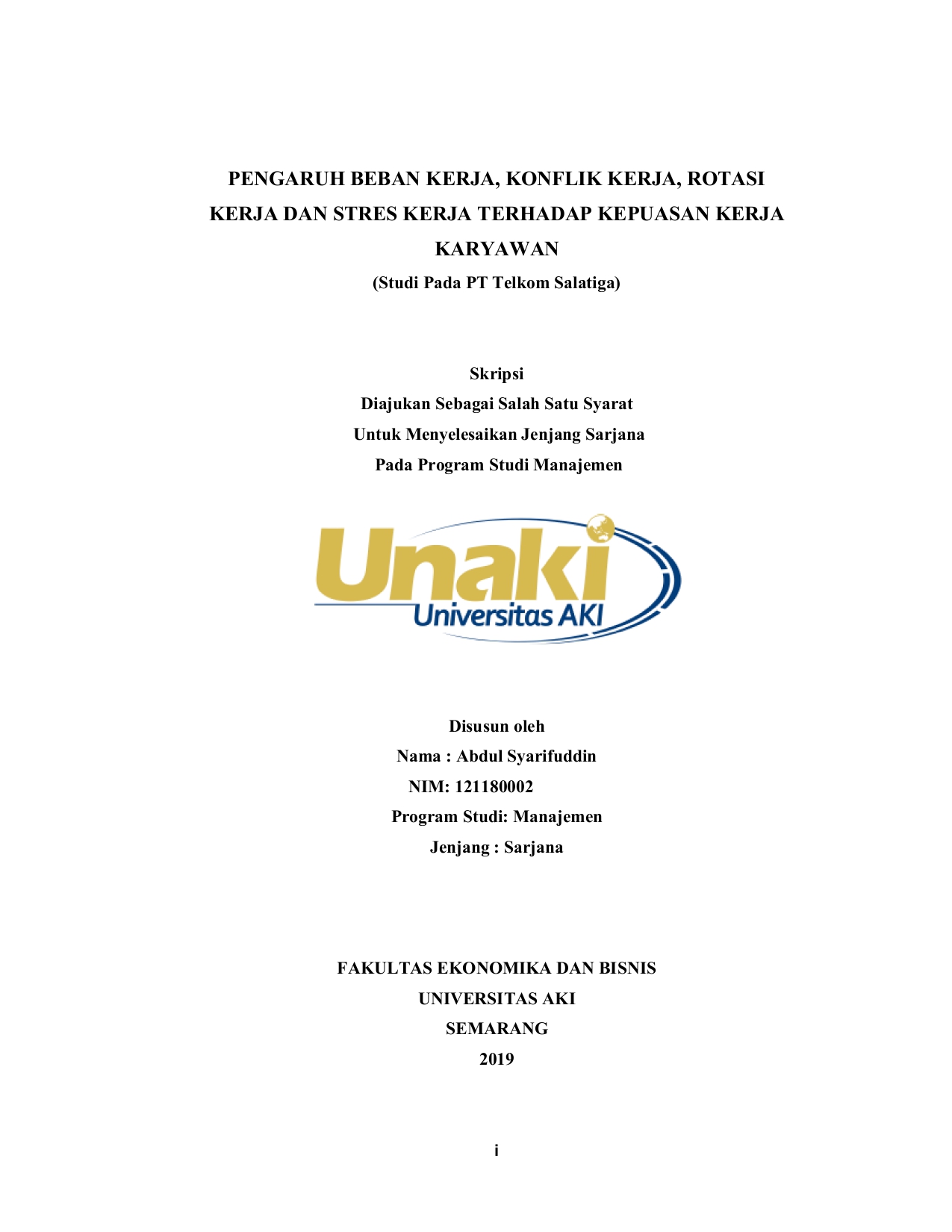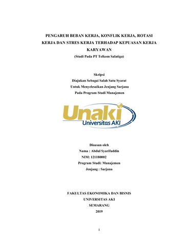 Syarifuddin, Abdul (2019) PENGARUH BEBAN KERJA, KONFLIK KERJA, ROTASI KERJA DAN STRES KERJA TERHADAP KEPUASAN KERJA KARYAWAN (Studi Pada PT Telkom Salatiga). S1 thesis, Universitas Aki.