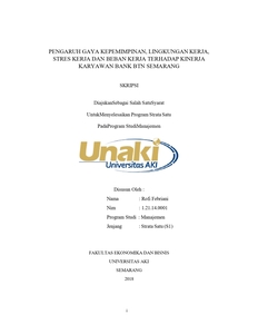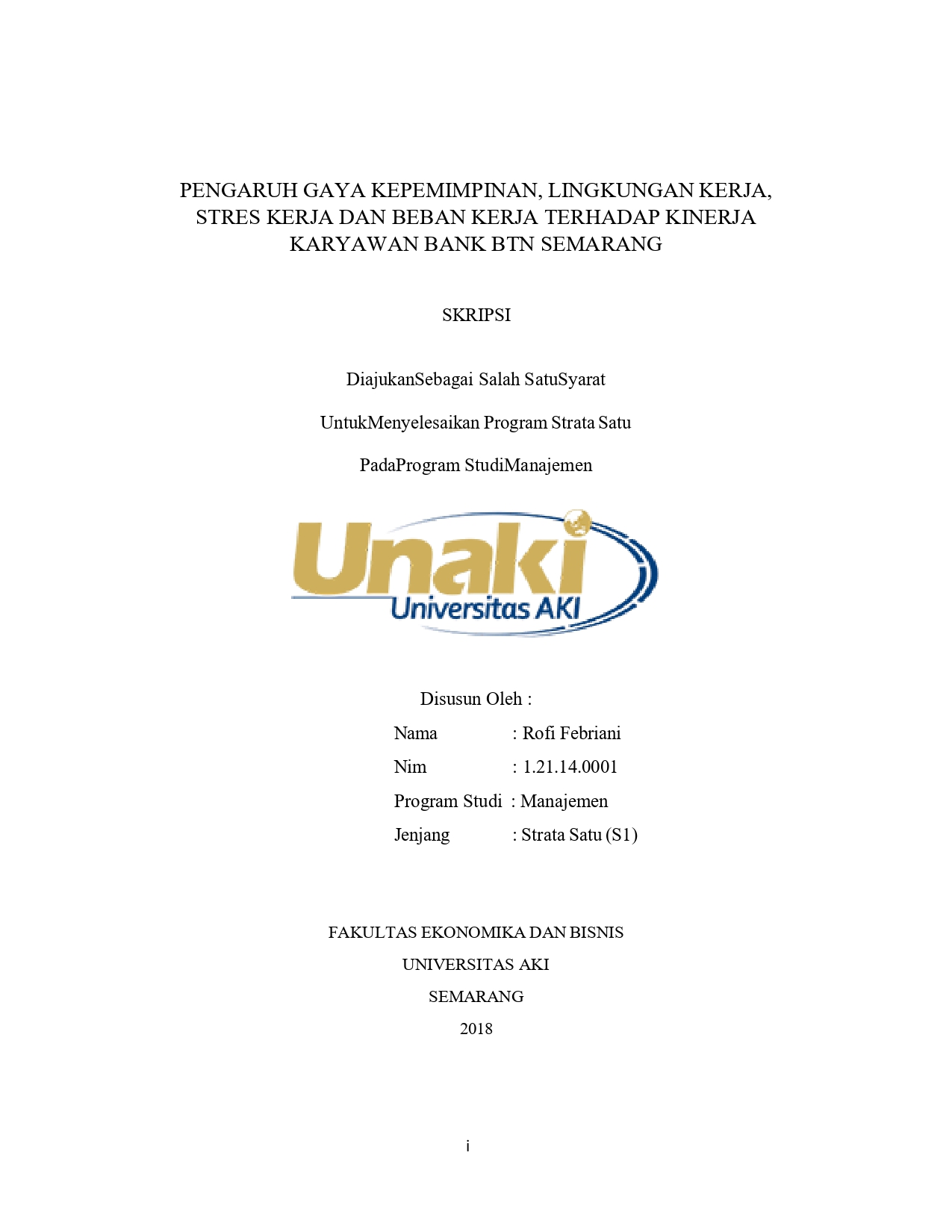 Febriani, Rofi (2018) PENGARUH GAYA KEPEMIMPINAN, LINGKUNGAN KERJA, STRES KERJA DAN BEBAN KERJA TERHADAP KINERJA KARYAWAN BANK BTN SEMARANG. S1 thesis, Universitas AKI.
