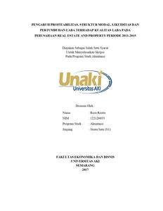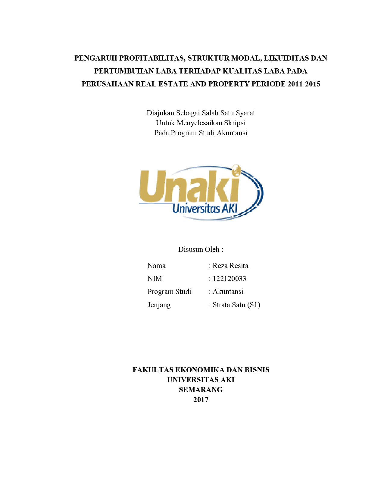 Resita, Reza (2017) PENGARUH PROFITABILITAS, STRUKTUR MODAL, LIKUIDITAS DAN PERTUMBUHAN LABA TERHADAP KUALITAS LABA PADA PERUSAHAAN REAL ESTATE AND PROPERTY PERIODE 2011-2015. S1 thesis, Universitas Aki.