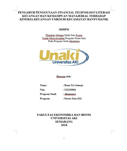 Atmojo, Danu Tri (2025) PENGARUH PENGGUNAAN FINANCIAL TECHNOLOGY LITERASI KEUANGAN DAN KEMAMPUAN MANAJERIAL TERHADAP KINERJA KEUANGAN UMKM DI KECAMATAN BANYUMANIK. S1 thesis, Universitas AKI.