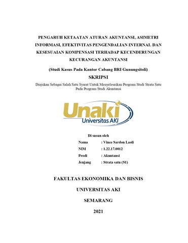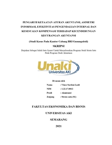 Laoli, Vince Sardon (2021) PENGARUH KETAATAN ATURAN AKUNTANSI, ASIMETRI INFORMASI, EFEKTIVITAS PENGENDALIAN INTERNAL DAN KESESUAIAN KOMPENSASI TERHADAP KECENDERUNGAN KECURANGAN AKUNTANSI (Studi Kasus Pada Kantor Cabang BRI Gunungsitoli). S1 thesis, Universitas Aki.