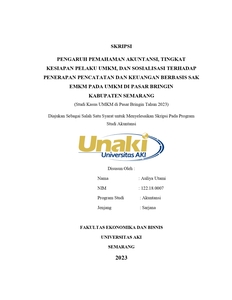 “ PENGARUH PEMAHAMAN AKUNTANSI, TINGKAT KESIAPAN PELAKU UMKM, DAN SOSIALISASI TERHADAP PENERAPAN PENCATATAN KEUANGAN BERBASIS SAK EMKM PADA UMKM DI PASAR BRINGIN KABUPATEN SEMARANG (Studi Kasus di Pasar Bringin tahun 2023).”
