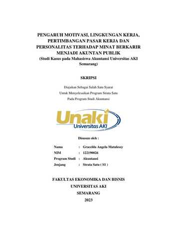 PENGARUH MOTIVASI, LINGKUNGAN KERJA, PERTIMBANGAN PASAR KERJA DAN PERSONALITAS TERHADAP MINAT BERKARIR MENJADI AKUNTAN PUBLIK (Studi kasus pada Mahasiswa Akuntansi Universitas AKI Semarang).