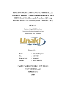 Tangaran, Meiyodia (2023) Pengaruh Profitabilitas, Ukuran Perusahaan, Leverage, Dan Price Earning Ratio Terhadap Nilai (Studi Kasus Pada Perusahaan LQ45 Yang Terdaftar Di Bursa Efek Indonesia Periode Tahun 2018 - 2021). S1 thesis, Universitas AKI.