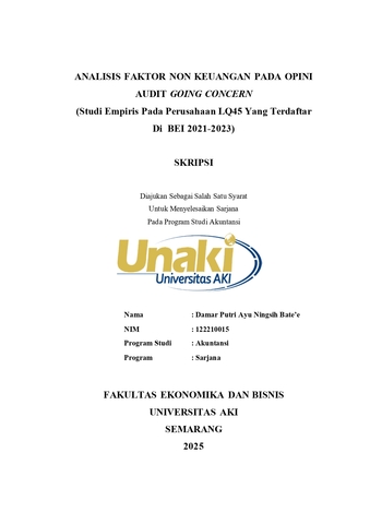 Bate’e, Damar Putri Ayu Ningsih (2025) ANALISIS FAKTOR NON KEUANGAN PADA OPINI AUDIT GOING CONCERN (Studi Pada Perusahaan LQ45 Yang Terdaftar Di BEI 2021-2023). S1 thesis, Universitas AKI.