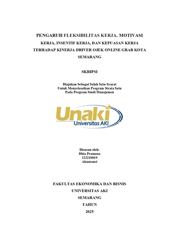 Pramana, Dhia (2025) PENGARUH FLEKSIBILITAS KERJA, MOTIVASI KERJA, INSENTIF KERJA, DAN KEPUASAN KERJA TERHADAP KINERJA DRIVER OJEK ONLINE GRAB KOTA SEMARANG. S1 thesis, Universitas AKI.