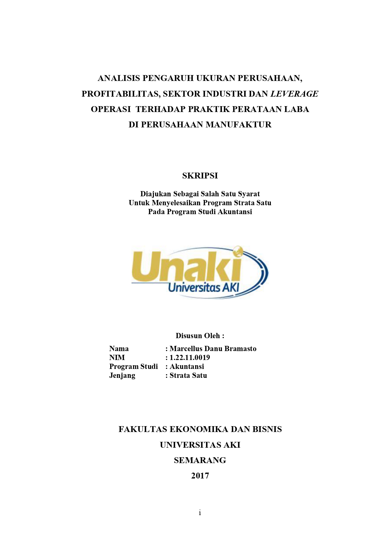 Bramasto, Marcellus Danu (2017) ANALISIS PENGARUH UKURAN PERUSAHAAN, PROFITABILITAS, SEKTOR INDUSTRI DAN LEVERAGE OPERASI TERHADAP PRAKTIK PERATAAN LABA DI PERUSAHAAN MANUFAKTUR. S1 thesis, Universitas Aki.