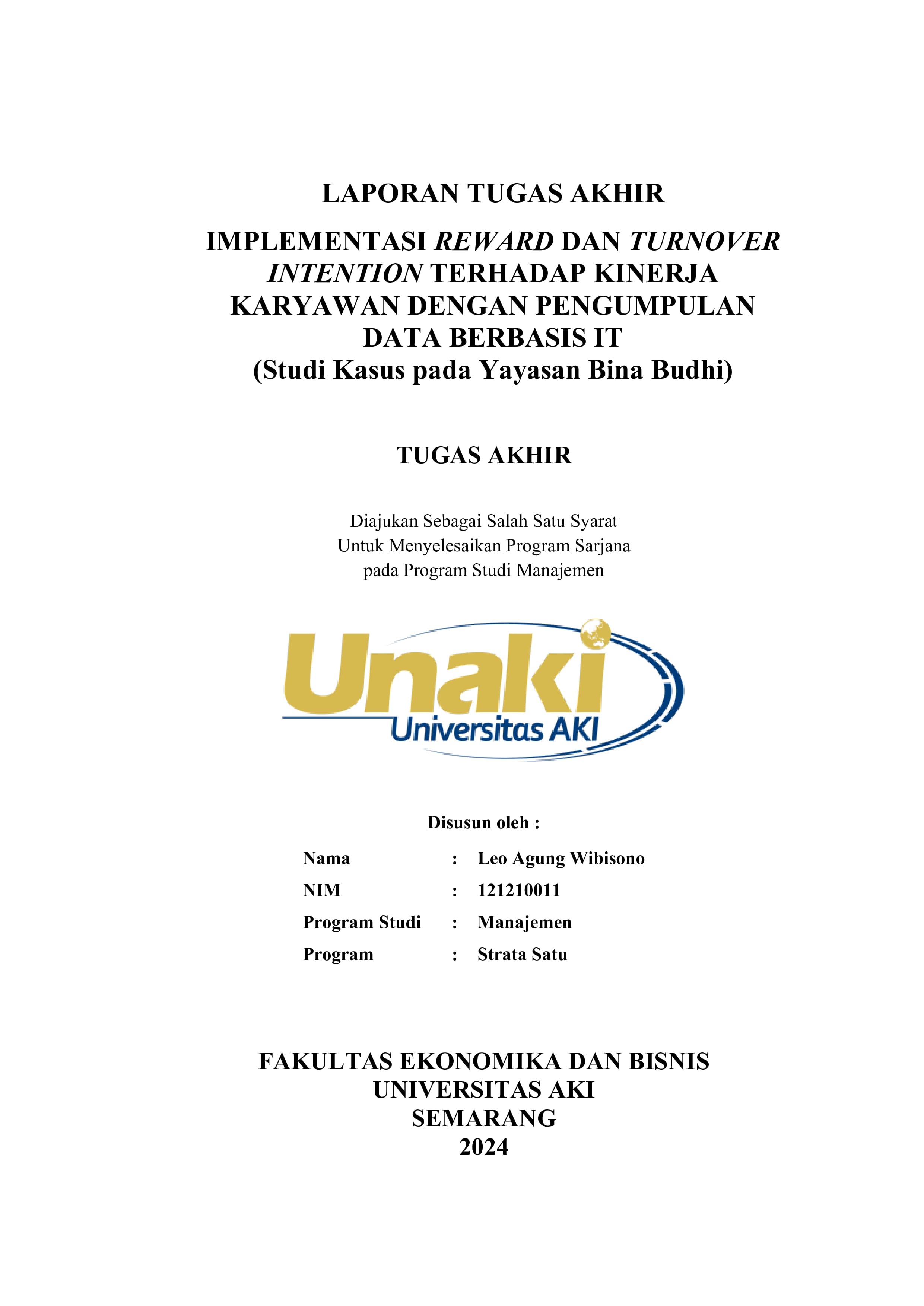 Wibisono, Leo Agung (2025) IMPLEMENTASI REWARD DAN TURNOVER INTENTION TERHADAP KINERJA KARYAWAN DENGAN PENGUMPULAN DATA BERBASIS IT (Studi Kasus pada Yayasan Bina Budhi). S1 thesis, Universitas AKI.