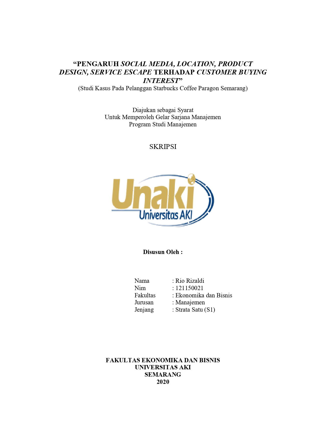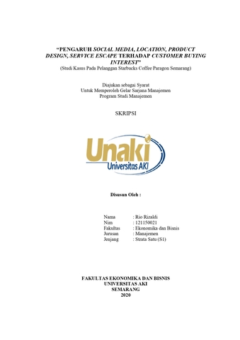 Rizaldi, Rio (2020) “PENGARUH SOCIAL MEDIA, LOCATION, PRODUCT DESIGN, SERVICE ESCAPE TERHADAP CUSTOMER BUYING INTEREST” (Studi Kasus Pada Pelanggan Starbucks Coffee Paragon Semarang). S1 thesis, Universitas AKI.