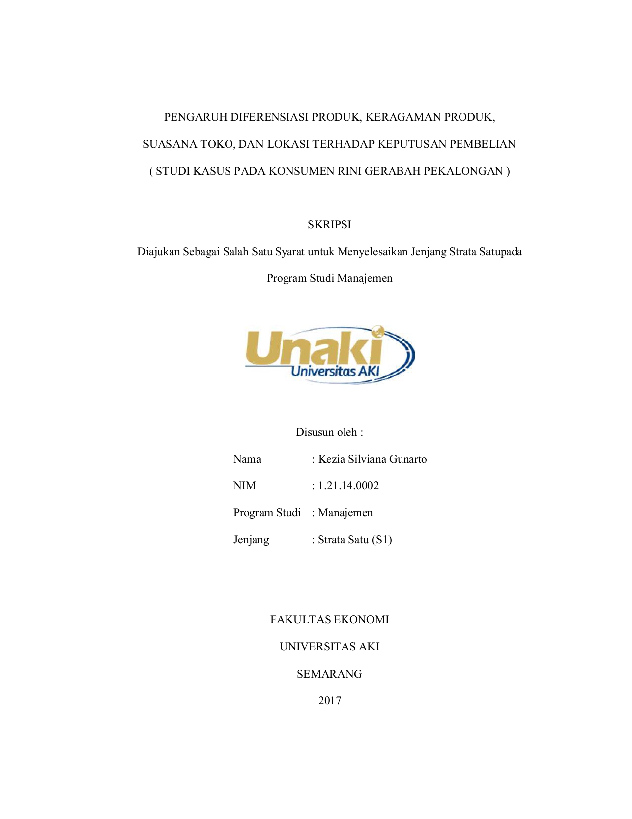 PENGARUH DIFERENSIASI PRODUK, KERAGAMAN PRODUK, SUASANA TOKO, DAN LOKASI TERHADAP KEPUTUSAN PEMBELIAN ( STUDI KASUS PADA KONSUMEN RINI GERABAH PEKALONGAN )
