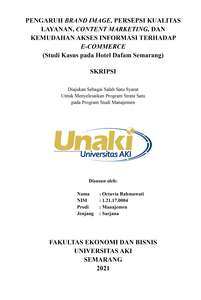 Rahmawati, Octavia (2021) ”PENGARUH BRAND IMAGE, PERSEPSI KUALITAS LAYANAN, CONTENT MARKETING, DAN KEMUDAHAN AKSES INFORMASI TERHADAP E-COMMERCE (Studi Kasus pada Hotel Dafam Semarang)”. S1 thesis, Universitas AKI.