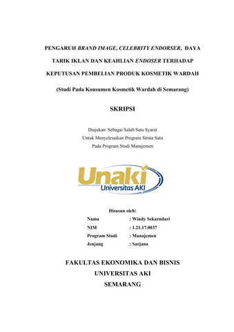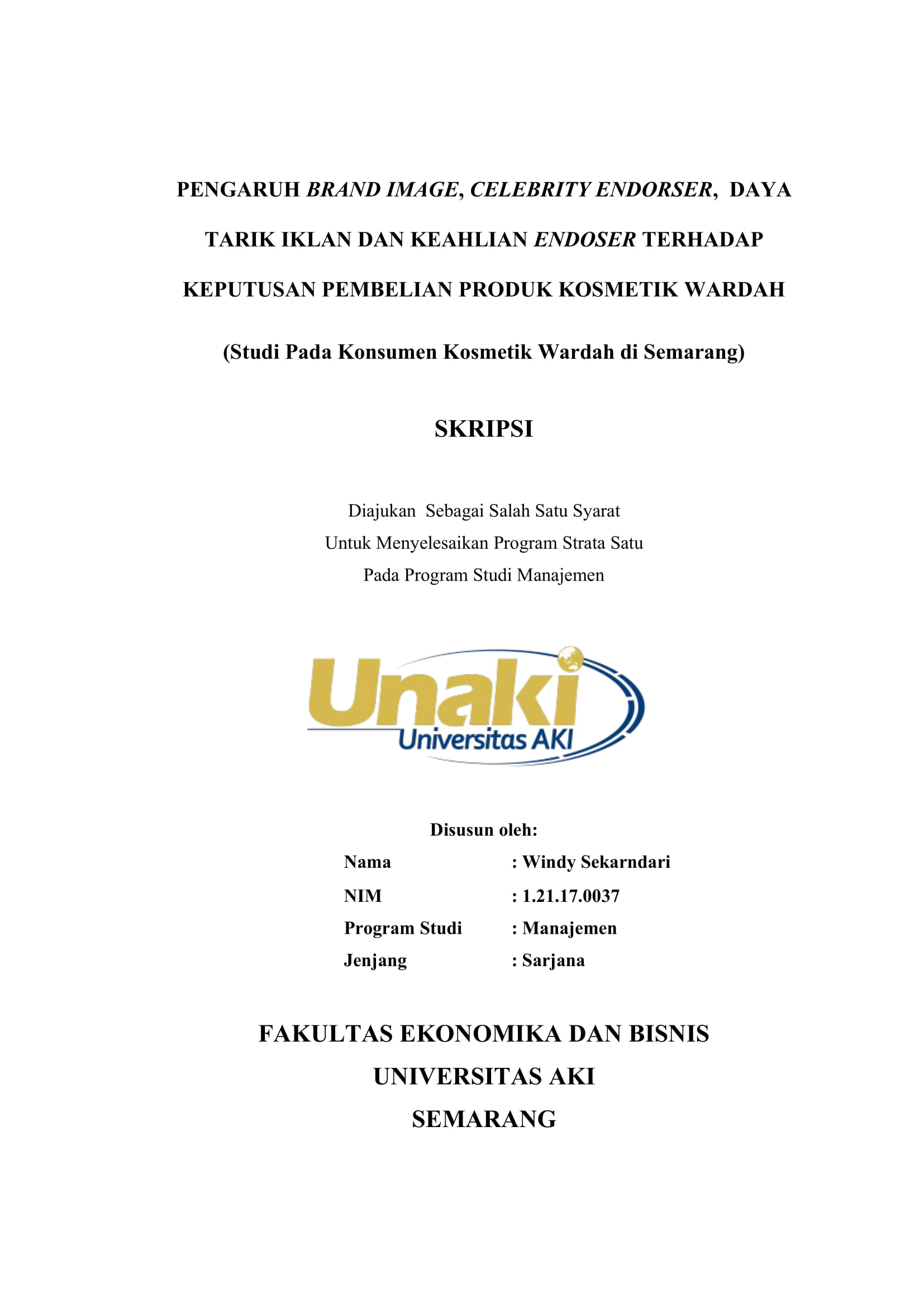 Sekarndari, Windy (2021) Pengaruh Brand Image, Celebrity Endorser, Daya Tarik Iklan dan Keahlian Endorser Terhadap Keputusan Pembelian Produk Kosmetik Wardah (Studi Kasus pada Konsumen Kosmetik Wardah di Semarang). S1 thesis, Universitas AKI.