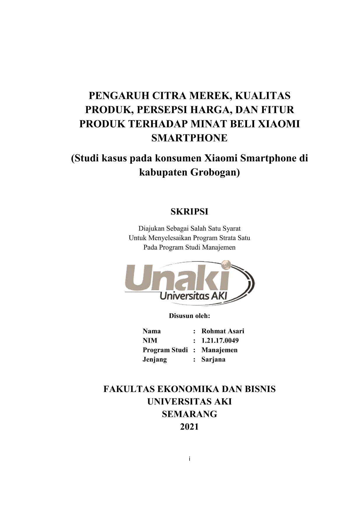 Asari, Rohmat (2021) PENGARUH CITRA MEREK, KUALITAS PRODUK, PERSEPSI HARGA, DAN FITUR PRODUK TERHADAP MINAT BELI XIAOMI PENGARUH CITRA MEREK, KUALITAS PRODUK, PERSEPSI HARGA, DAN FITUR ERHADAP MINAT BELI XIAOMI PENGARUH CITRA MEREK, KUALITAS PRODUK, PERSEPSI HARGA, DAN FITUR ERHADAP MINAT BELI XIAOMI SMARTPHONE (Studi kasus pada konsumen Xiaomi Smar (Studi kasus pada konsumen Xiaomi Smartphone di kabupaten Grobogan). S1 thesis, Universitas Aki.