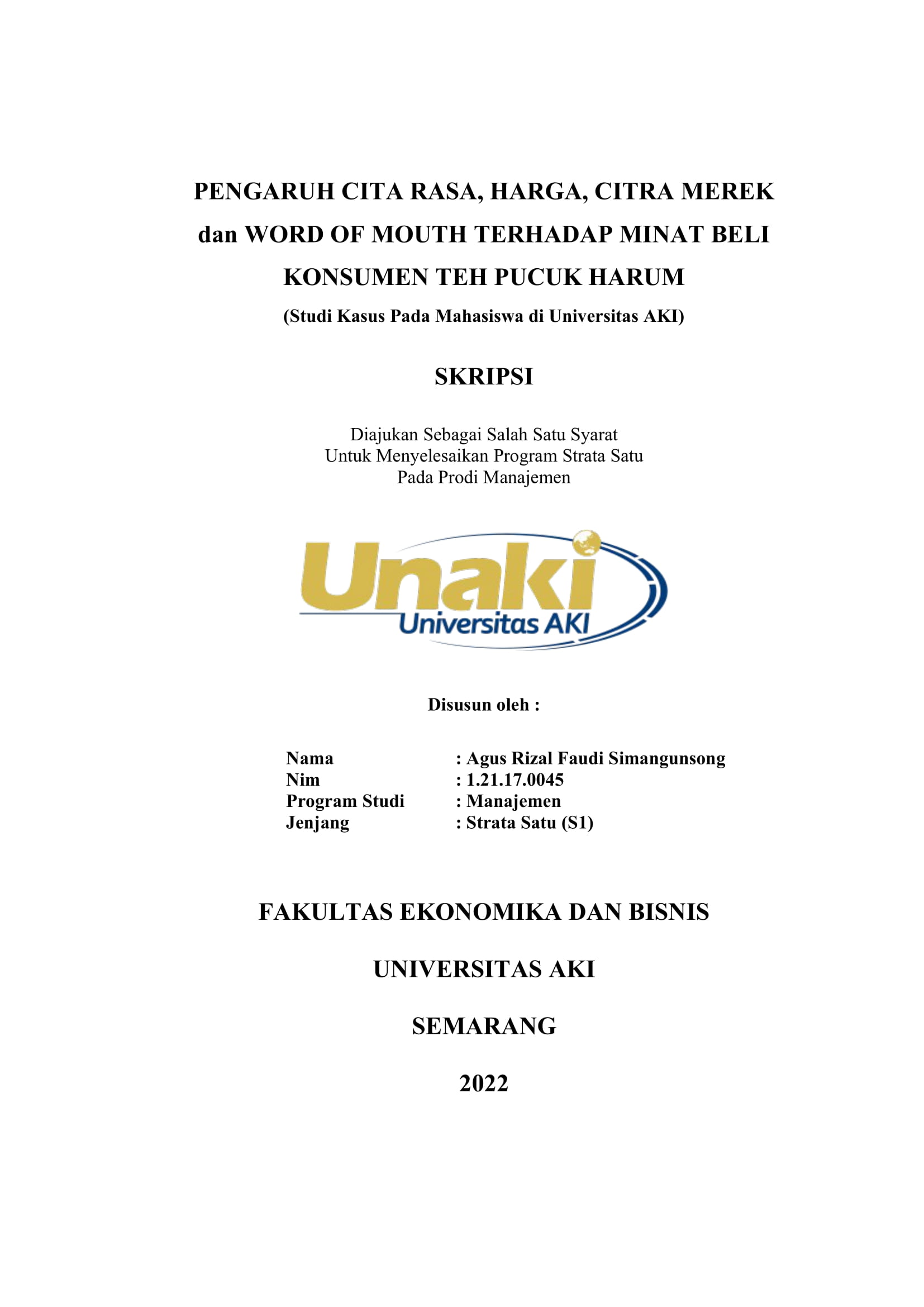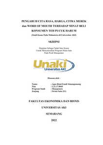 PENGARUH CITA RASA, HARGA, CITRA MEREK dan WORD OF MOUTH TERHADAP MINAT BELI KONSUMEN TEH PUCUK HARUM (Studi Kasus Pada Mahasiswa di Universitas AKI)